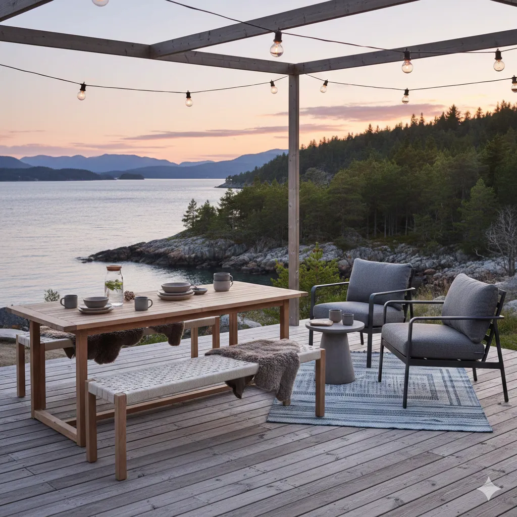 A complete three-piece furniture set featuring weather-resistant materials and minimalist Nordic design. Includes table and two chairs, perfect for small to medium balconies.