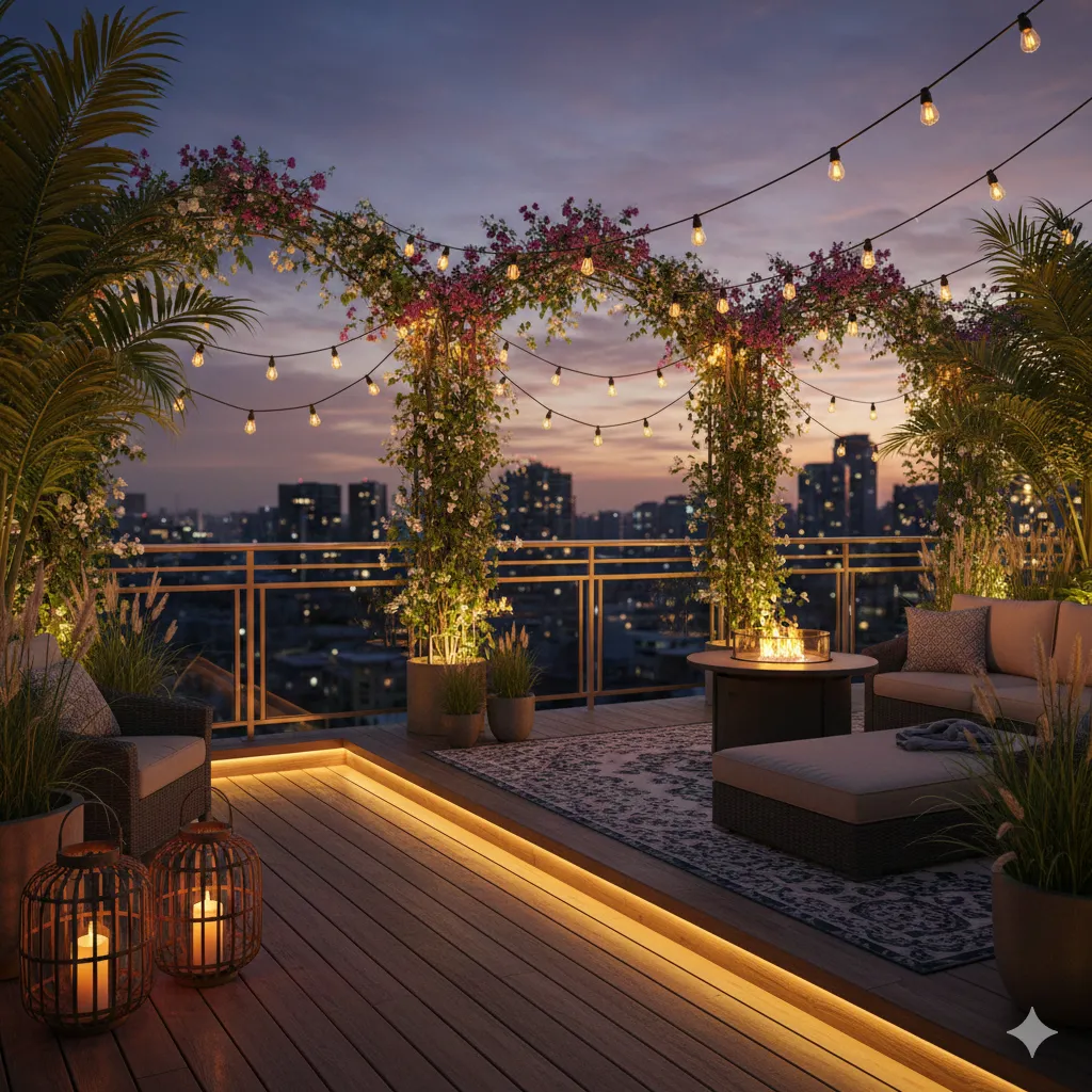 A comprehensive lighting package featuring LED string lights, solar-powered lanterns, and wall-mounted fixtures. Creates a warm, inviting atmosphere for evening relaxation.